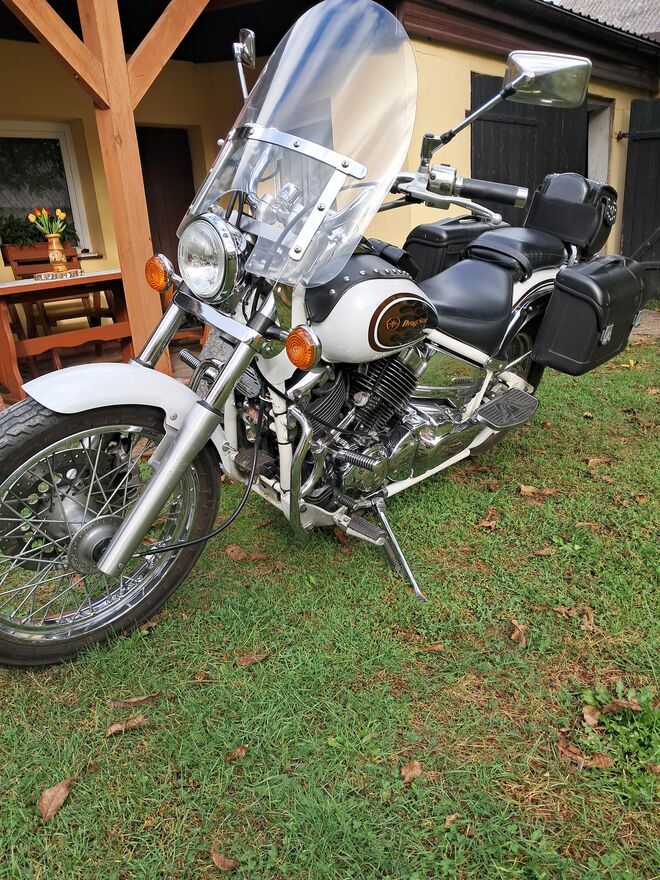 Sprzedam choppera XVS Yamaha Drag Star. Pojemność 650 cm. Rok produkcji 2001.Przebieg 34 tyś, km. Wersja limitowana europejska na wale kardana w kolorze białej perły. Niezawodny motorek posiadam od 5 lat. Stan bardzo dobry. Cena 16500.Powiadom o podobnych ogłoszeniach